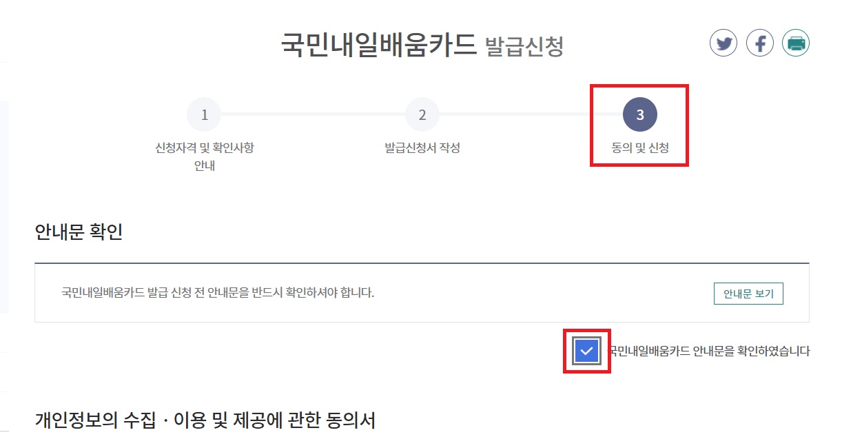 중간에 나와있는 국민내일배움카드 발급 신청 버튼을 클릭합니다.