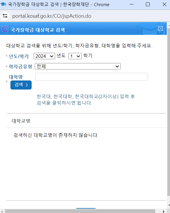 내가 다니게 될 대학교가 국가장학금 신청이 가능하다고 나왔나요?